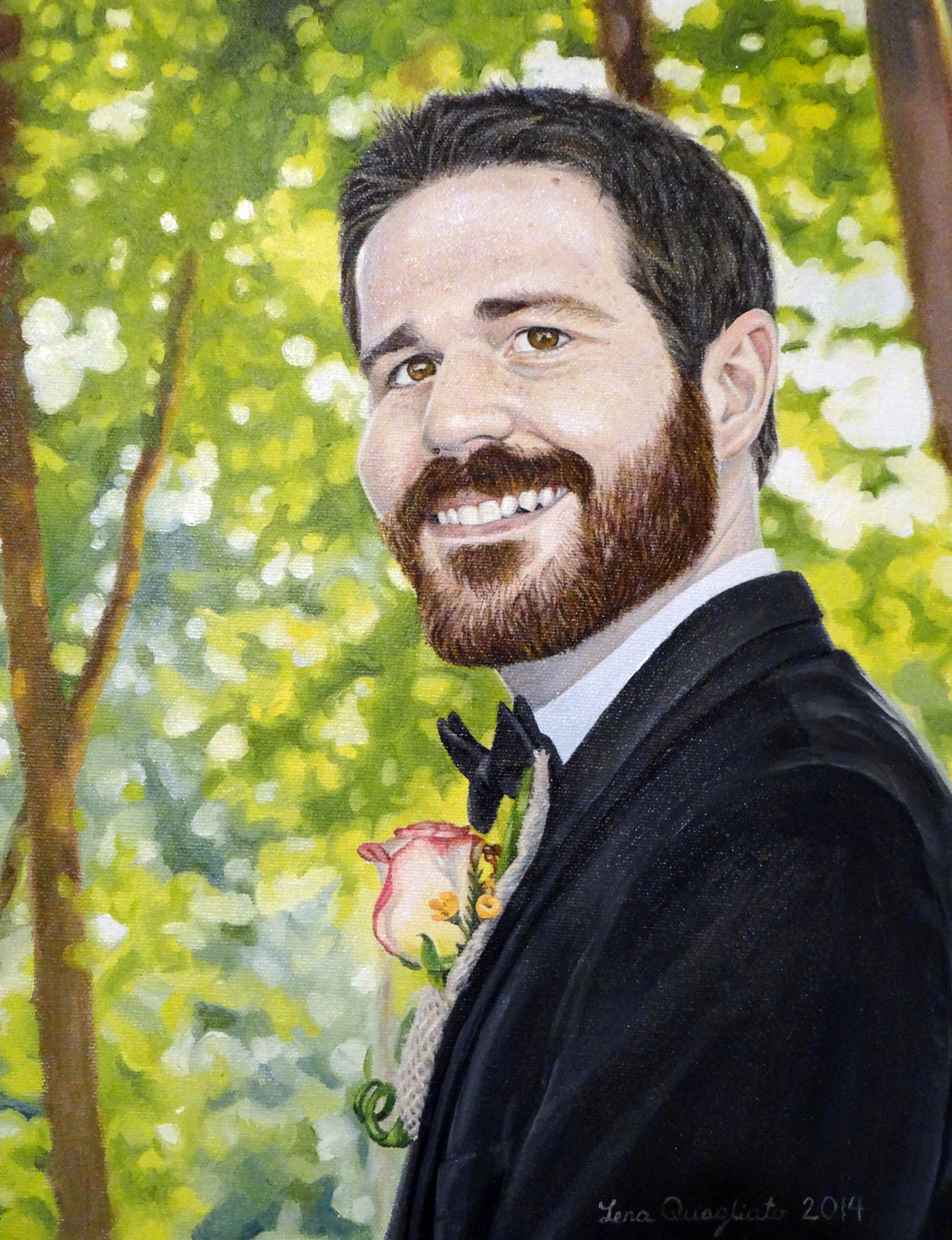 This painting was very fun to do. I enjoyed the change in subject matter and the strength of the composition in the original reference photo that didn’t take much altering. The commissioner wanted his face to look more recent, as the original reference photo was taken about 10 years ago.